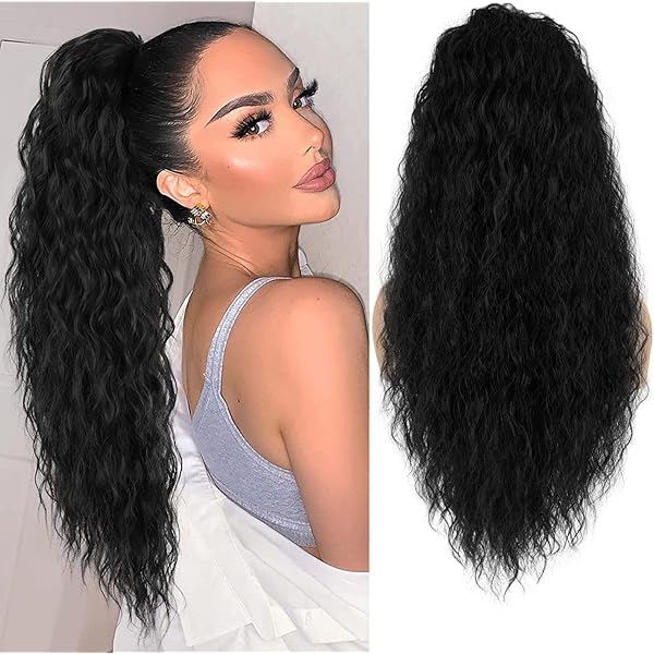 Amazon Com Ponytail Hair Extension Long Kinky Curly Ponytail Extensions 24 30inch Synthetic Black Drawstring Puff Afro Ponytail Clip In Hair Extension Fake Hair Ponytail Wig Daily Fluffy Pony Tail For Women Si